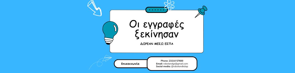 Το Κ.Δ.Α.Π. ROBOLAND είναι ένα Πρότυπο Κέντρο Δημιουργικής Απασχόλησης για παιδιά ηλικίας 5- 12 ετών.